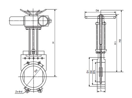 PZ573X傘齒輪漿液閥主要外形及連接尺寸