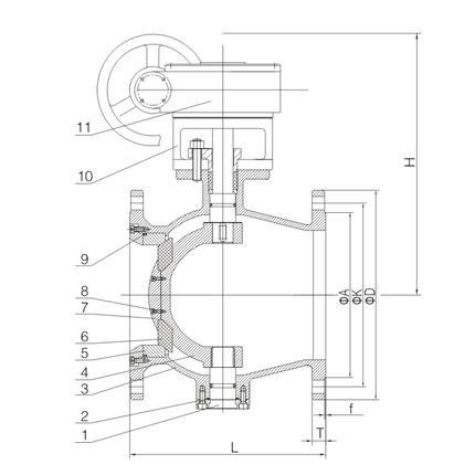 BPQ340TC陶瓷偏心半球閥主要外形和連接尺寸: